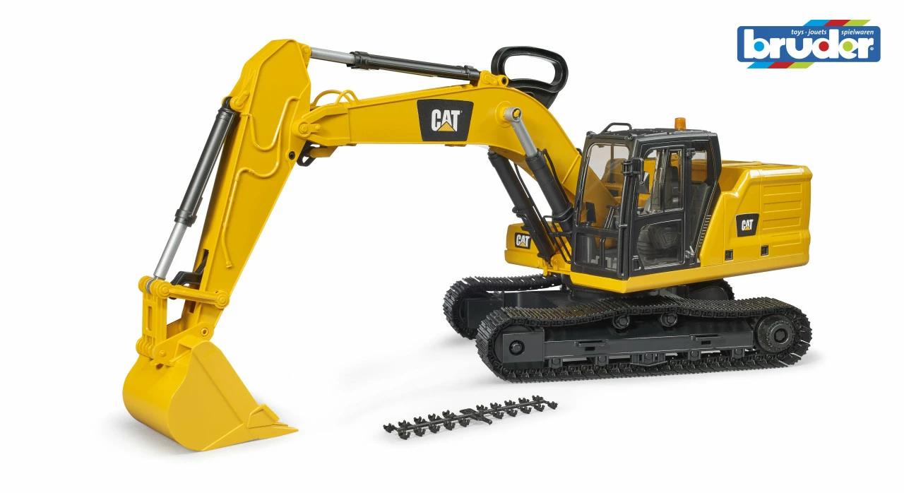 The new generation of CAT Excavators is designed for the most demanding tasks. With optimised load-bearing capacity, a wide range of shovels and buckets and efficient latest-generation diesel engines, this excavator is one of the most modern vehicles on any construction site. For demanding tasks in the sandpit and children’s room, this great excavator has now arrived as a new model in BRUDER’s selection of construction vehicles. The optional bworld figure has an advanced workplace in the modern and fully glazed driver’s cab. The excavator arm is fully functional via the hand lever and can also work below vehicle level. The excavator reaches even the most difficult terrain thanks to genuine chain links. Two engine hatches can be opened for upcoming maintenance work. The VOLVO tipper (item no. 02455) and the large Cat® track-type tractor (item no. 02452) are particularly fitting additions from the wide BRUDER selection. This means that nothing stands in the way of the next large construction site.