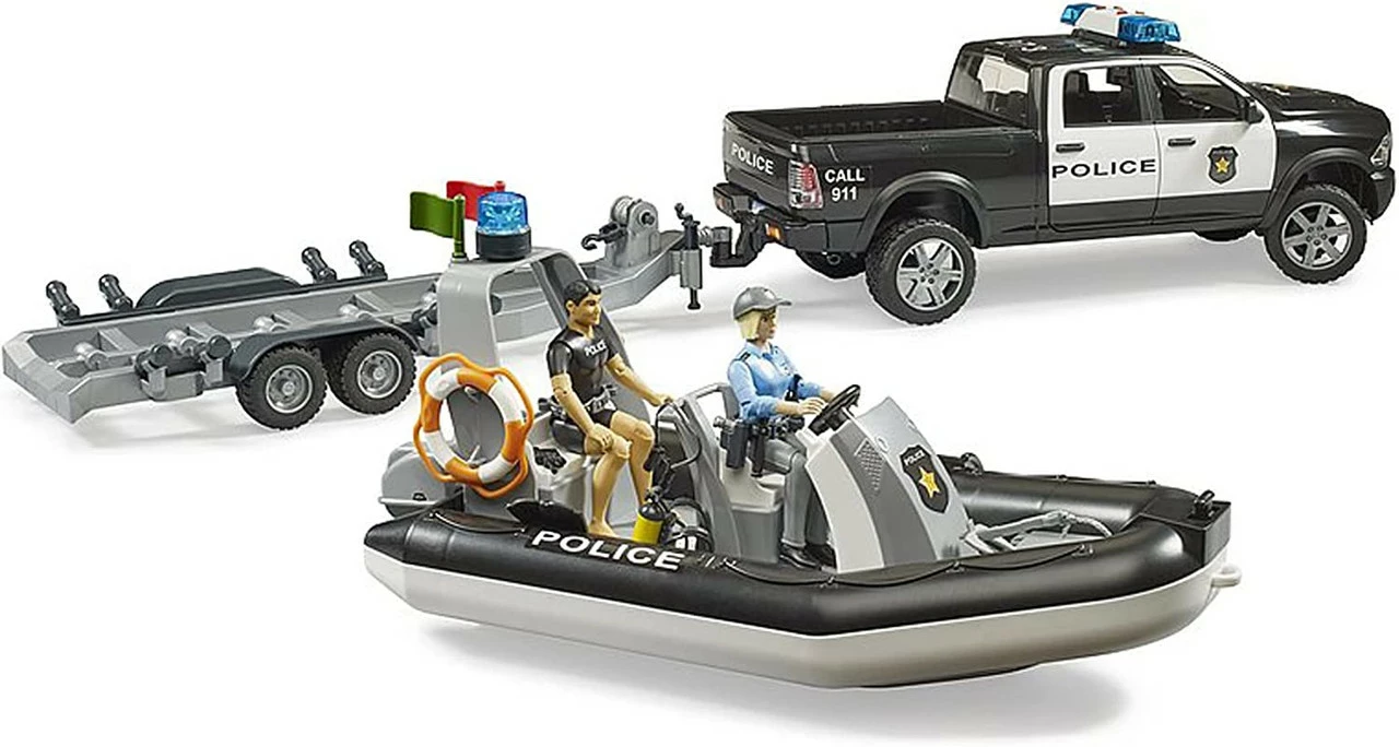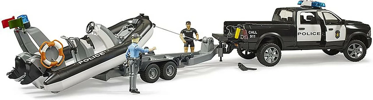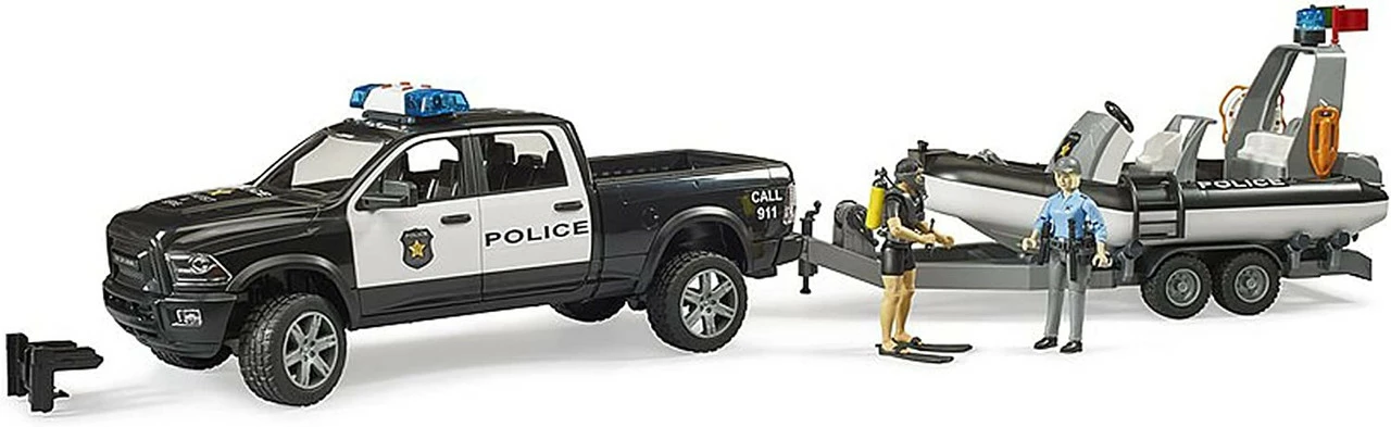 - In order to be able to operate on any type of water in the future, a 4×4 police pickup truck with boat and emergency diver will be added to the BRUDER emergency services.