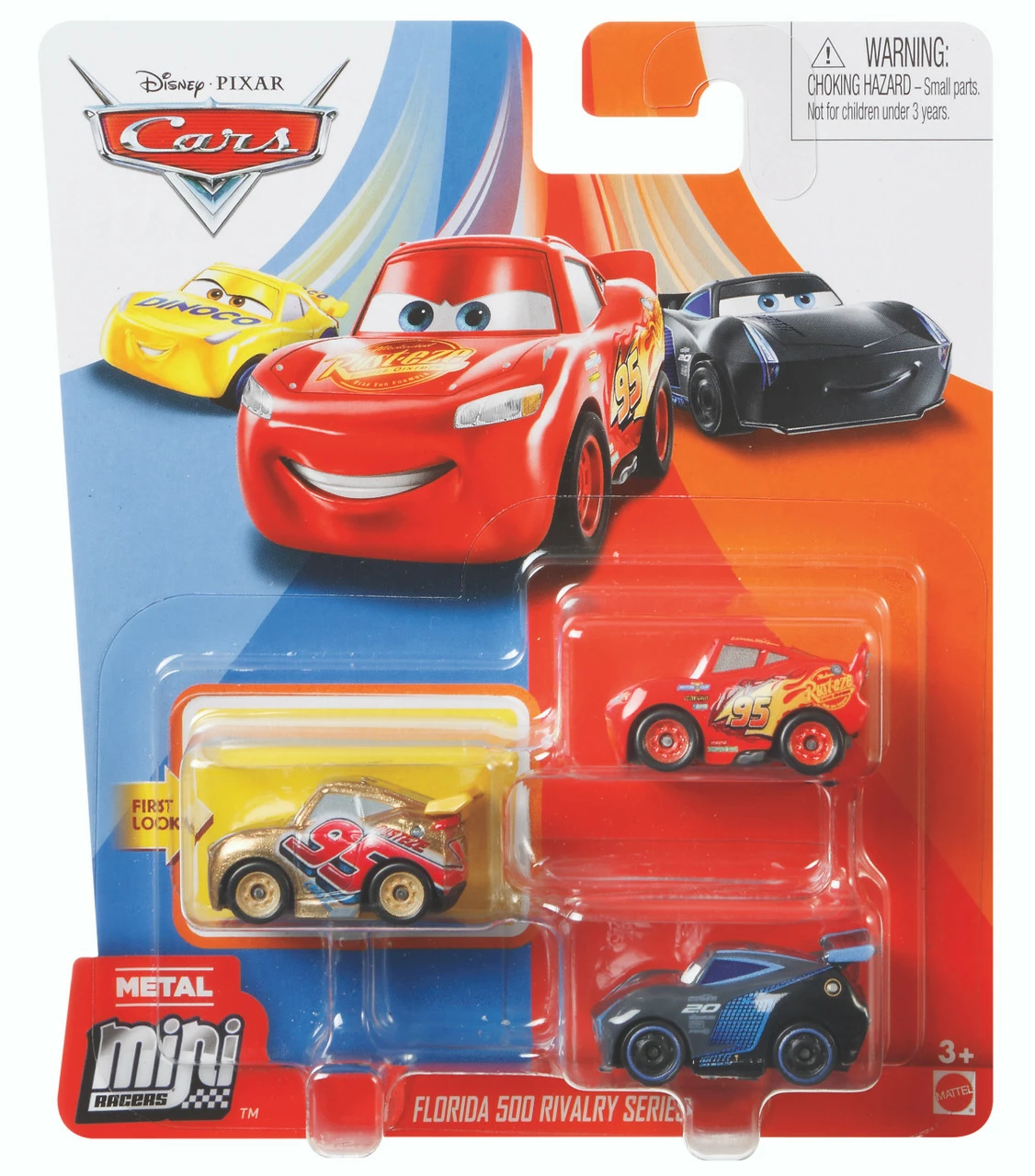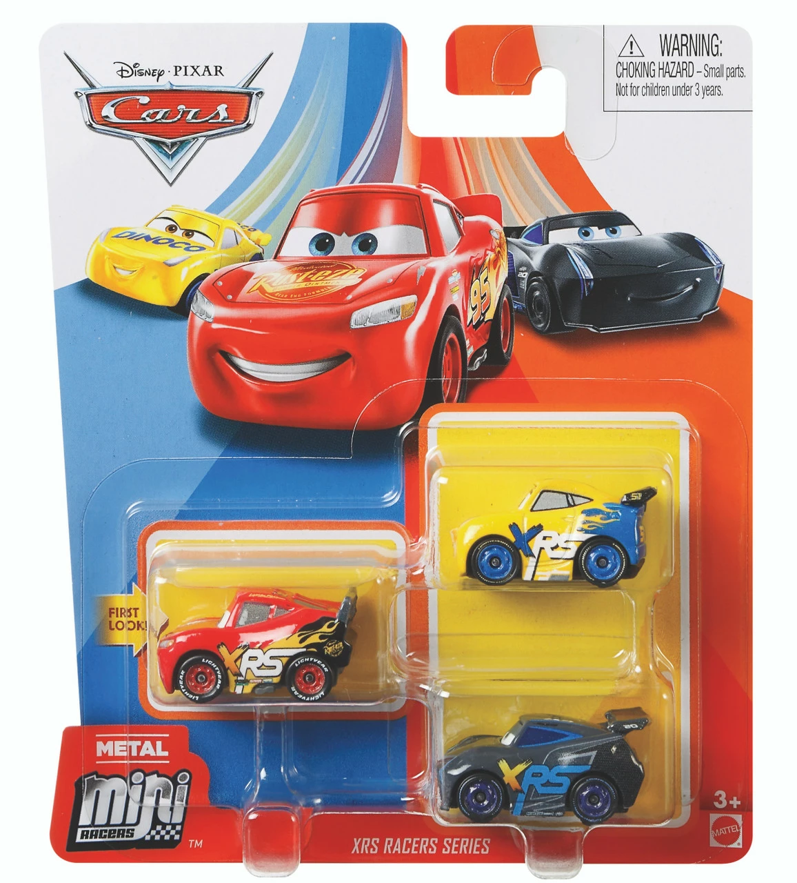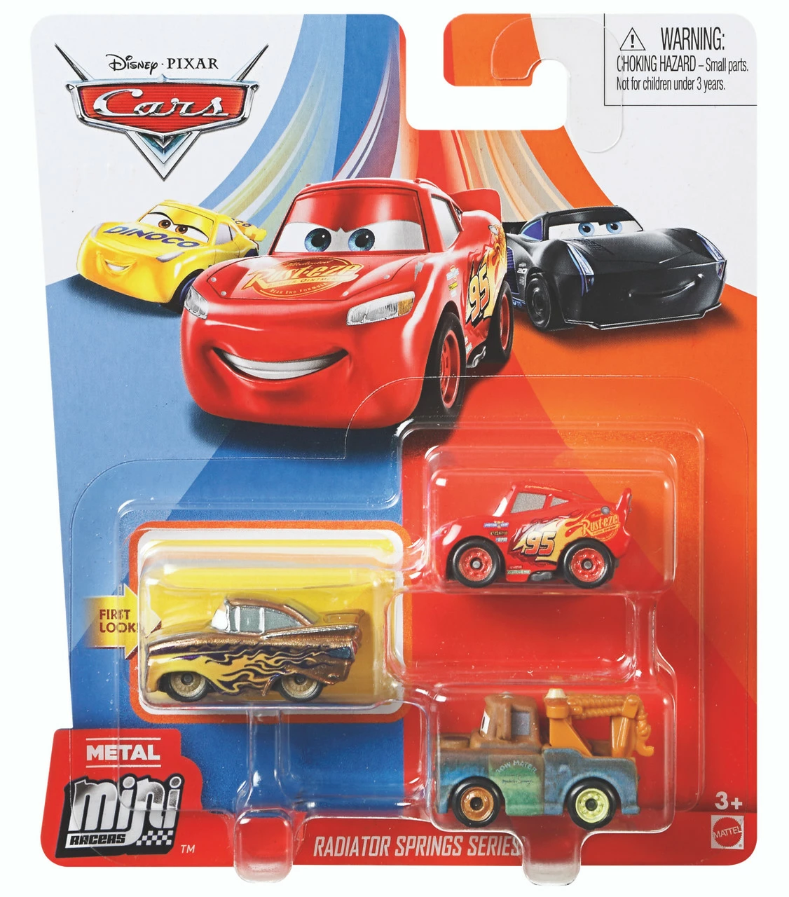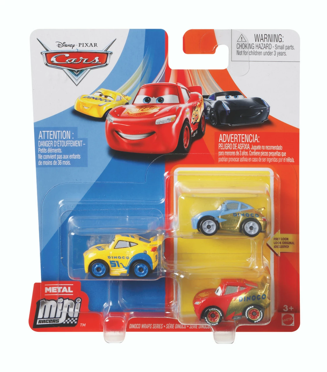Disney Pixar Cars mini racers now come in cool, collectible theme packs and include an exclusive car! Collect all of the 3-packs with their unique looks and recreate big movie adventures or create an awesome display. You can also take the pocket size vehicles on the road to fun!