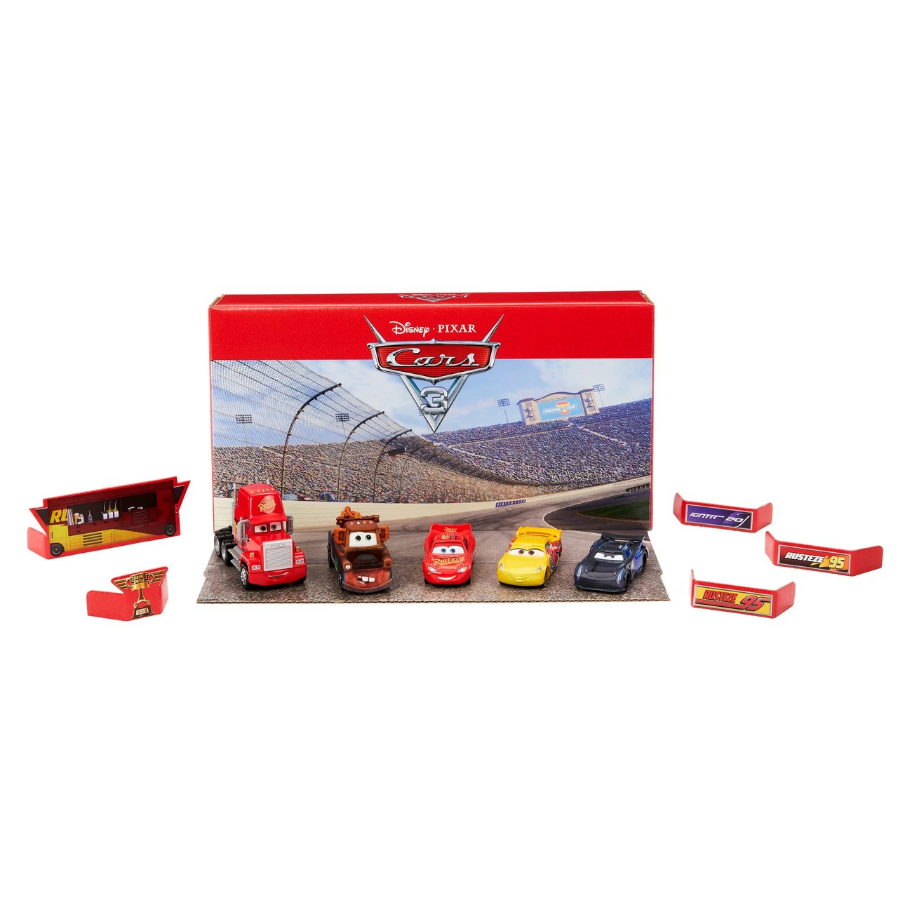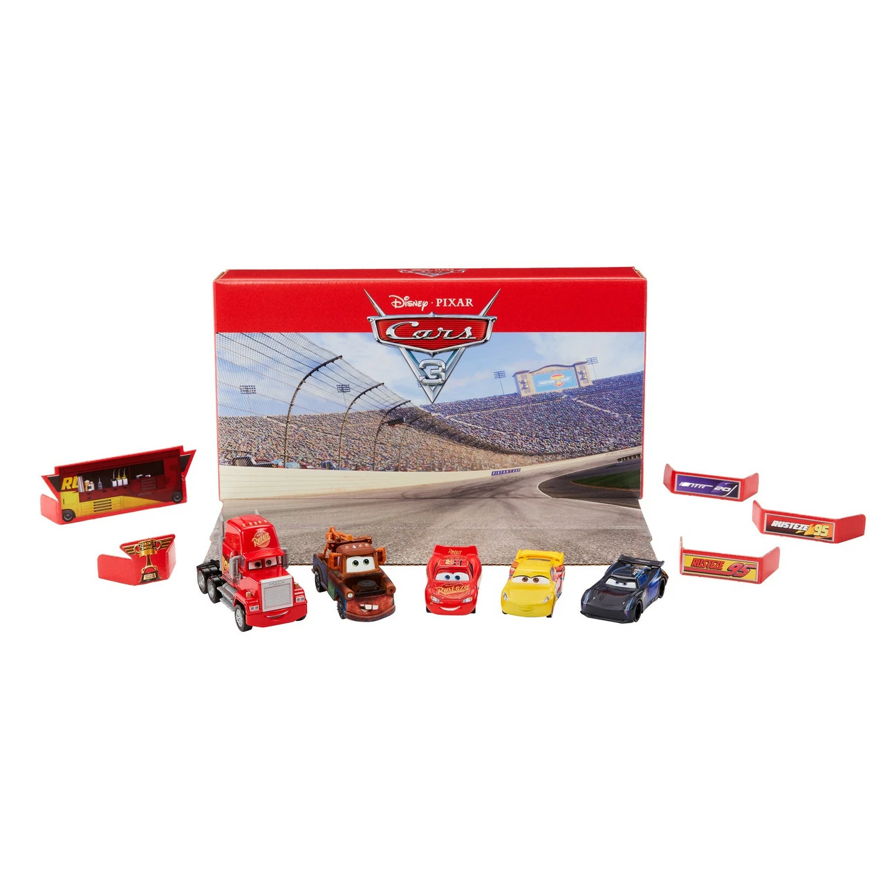 Create an instant Disney and Pixar Cars 3 collection with five character cars in one set that celebrates Piston Cup Racing. Fans will love unboxing the package to reveal a fold-out scene and perforated storytelling pieces inspired by the Florida 500 Piston Cup race. Lightning McQueen, Mater, Cruz Ramirez, Jackson Storm and Mack are ready to roll right out of the box into racing fun for play and display. Recreate moments from the film or create new memories — kids and collectors will love bringing the movie to life via play and display. With lots of fan-favourite elements, this Disney and Pixar Cars five-pack set makes a great gift for fans of the film ages 3 years old and up. Colours and decorations may vary. Key Features: Disney and Pixar Cars fans will love this 5-car storytelling set inspired by Cars 3! Unbox the package and find the fold-out scene of the Florida 500 race in the Piston Cup series, a cut-out movie poster and perforated storytelling pieces, including a snack bar! Use the items with the 5 included character vehicles for play or display — the playset comes with Lightning McQueen, Mater, Cruz Ramirez, Jackson Storm and Mack! Cars fans will have a blast recreating favourite movie scenes and inventing new adventures! The instant collection of fan-favourite vehicles makes a great gift for collectors and kids ages 3 years old and up!