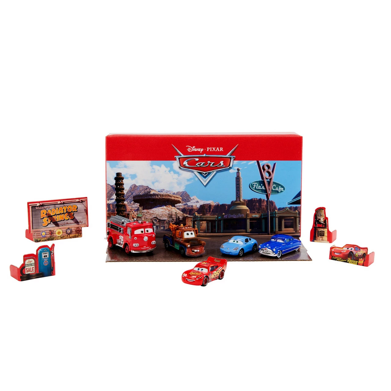 It’s an instant collection that goes back to where it all began with five character cars that showcase the first Disney and Pixar Cars movie in one set. Fans will love unboxing the package to reveal a perforated fold-out scene of Flo’s Café in Radiator Springs. The five vehicles include four character cars, including Lightning McQueen and Red fire truck for play and display. Recreate moments from the film or create new Cars memories — kids and collectors will love bringing the movie to life. With lots of fan-favourite elements, this Disney and Pixar Cars five-pack set makes a great gift for fans of the film ages 3 years old and up. Colours and decorations may vary. Key Features: Disney and Pixar Cars fans will love this 5-car storytelling pack inspired by the first film! Unbox the package and find the fold-out scene of Flo’s Café in Radiator Springs, a cut-out movie poster and perforated storytelling pieces, like a gas pump and welcome sign! Use the items with the 5 included character vehicles for play or display — the set comes with Lightning McQueen, Mater, Sally Carrera, Doc Hudson and fire truck Red! Cars fans will have a blast recreating favourite movie scenes and inventing new adventures! The instant collection of fan-favourite vehicles makes a great gift for collectors and kids ages 3 years old and up!