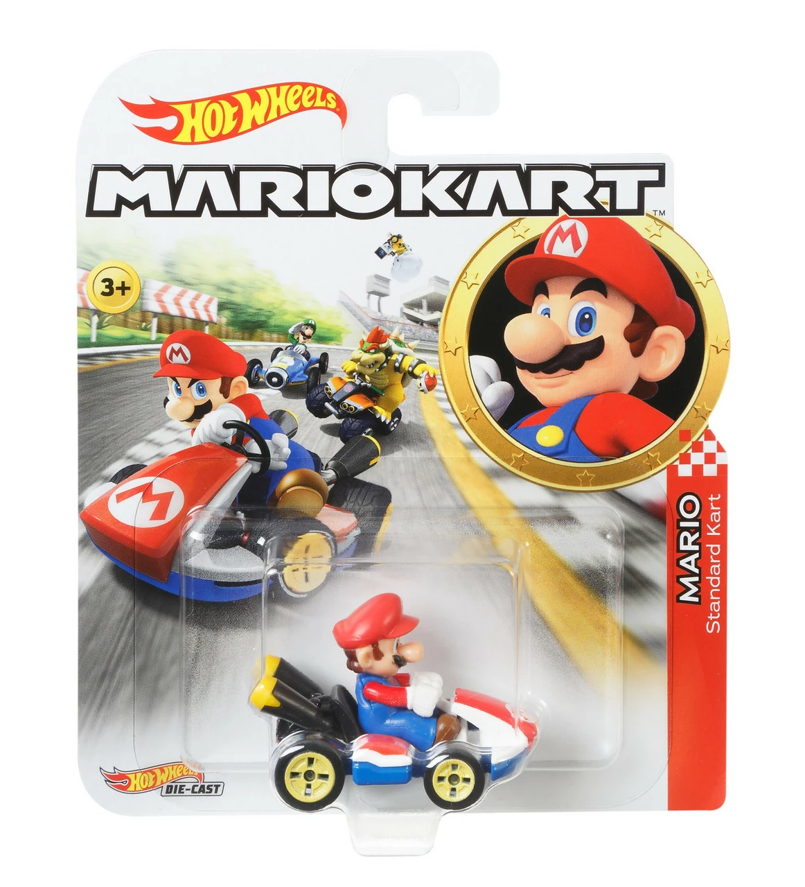 Kids can choose their favorite Mario Kart characters and speed off-line for racing and stunting madness with the Hot Wheels 1:64 Mario Kart replica die-cast assortment! Power-up their imagination when they select their favorite player among the fan-favorite iconic Mario Kart characters. Combine the hands-on thrill of Hot Wheels performance and re-live in-game stunting, avoid hazards, unlocking features, race and re-live adventurous stories. Each Mario Kart player replicas are suitable for Hot Wheels track, too. Each sold separately.
