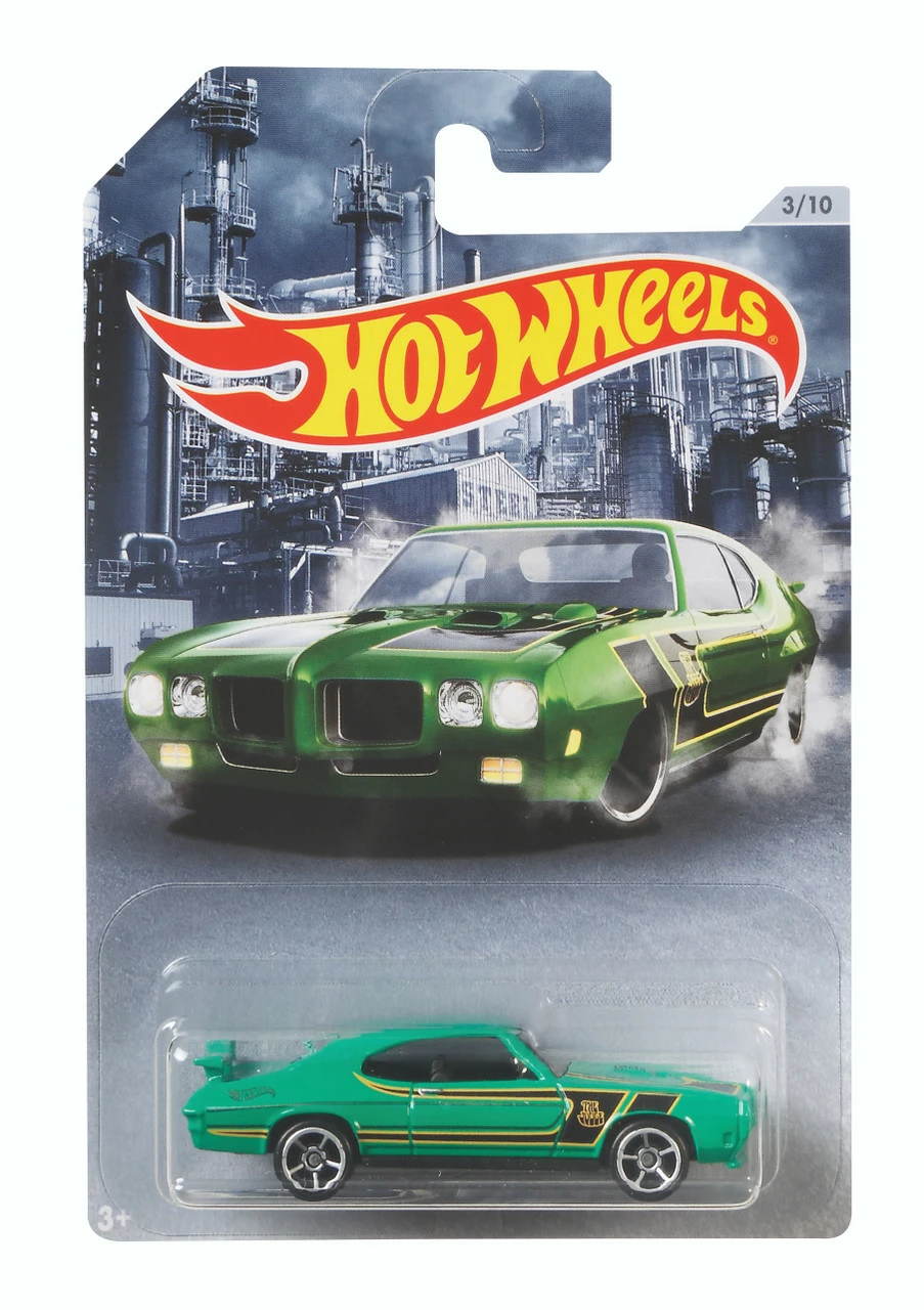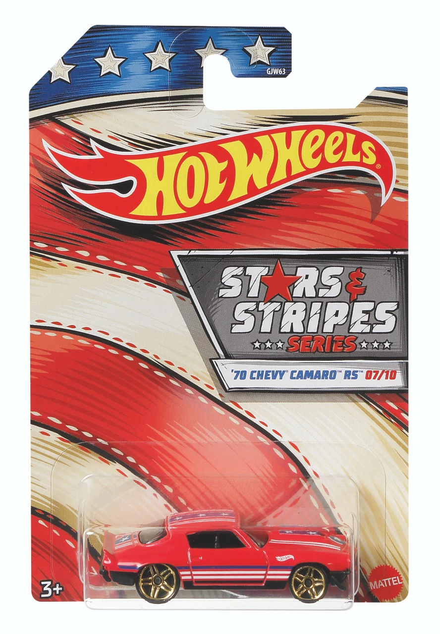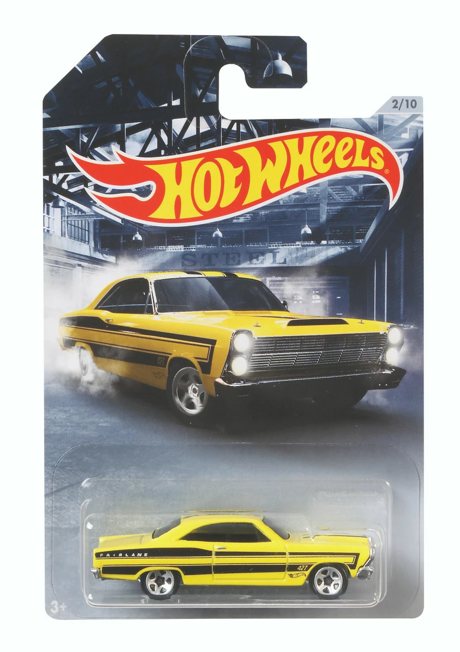 Now collectors can get the power of American Steel vehicles as Hot Wheels® die-cast replicas. Estimates put the number of heavy-duty steel automobiles produced in Detroit close to two million! This cool collection of full metal body construction in 1:64 scale are replicas that pay homage to some of the classics with an American Steel series available exclusively at Walmart. This collection of highly detailed iconic vehicles highlights the muscle car and includes fan-favorites as Hot Wheels® models with exclusive deco and numbered packaging. You can collect them all! Each sold separately, subject to availability. Colors and decorations may vary.
