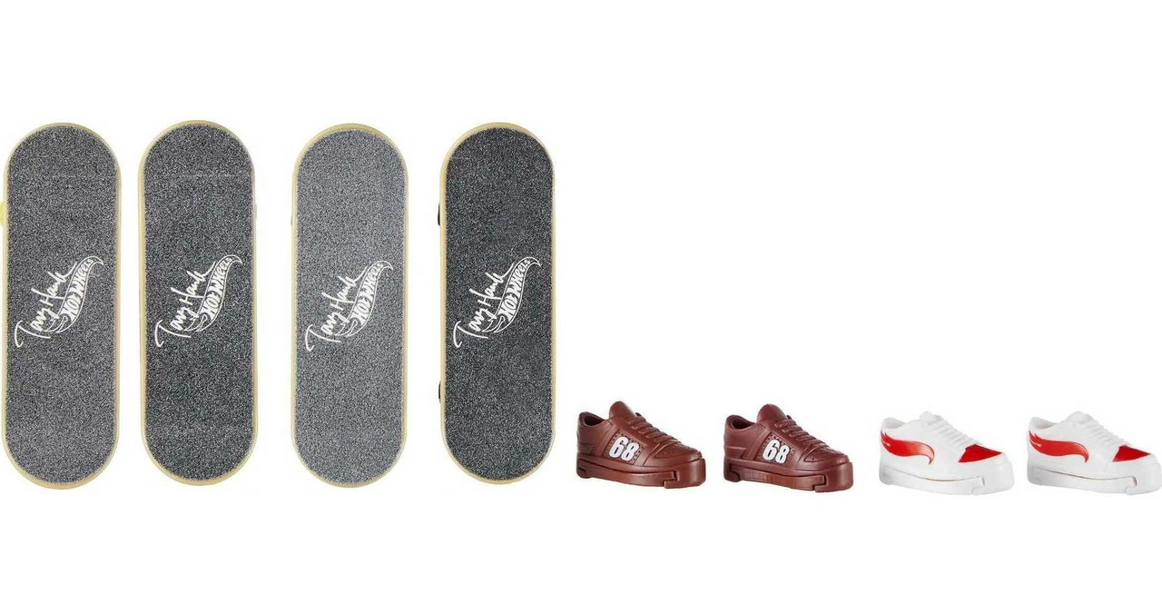 - The Hot Wheels Skate Multipack features 4 fully assembled fingerboards created in collaboration with iconic skateboarder Tony Hawk plus 2 pairs of cool skate shoes.