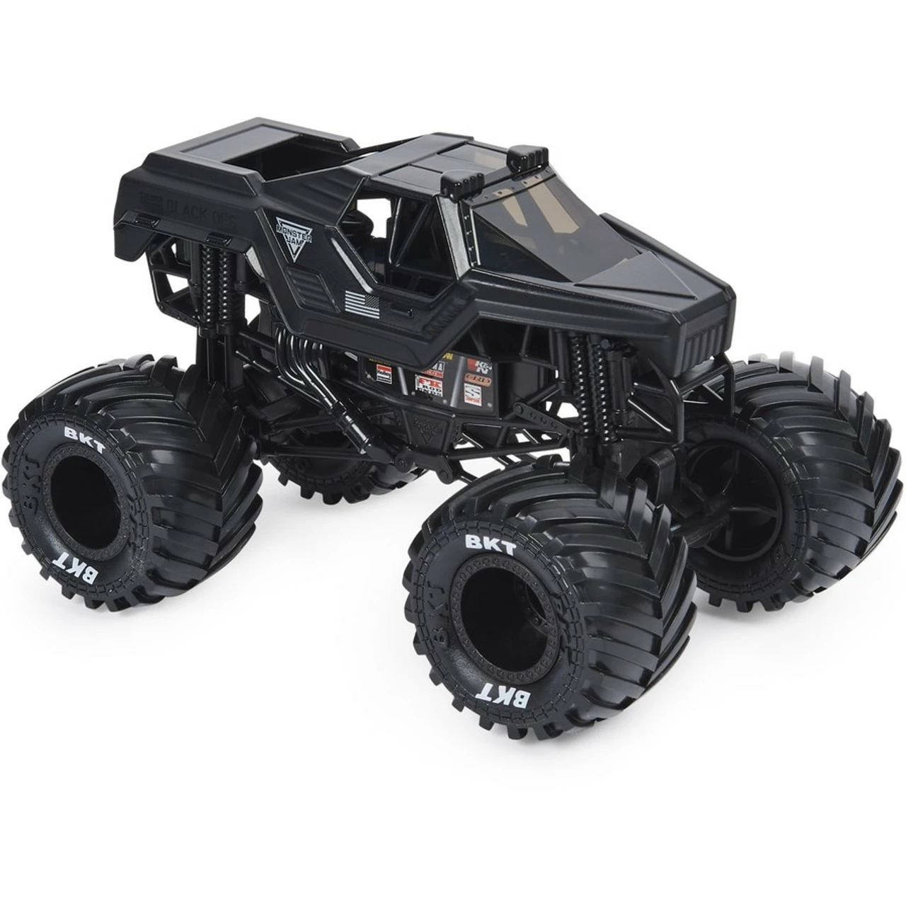 Ramp up your Monster Jam game with the all-new, official Monster Jam 1:24 scale die-cast monster truck! Featuring awesome graphics and a detailed chassis, this authentic replica embodies the style and swagger of the real thing! Official rubber BKT Tires provide greater traction, so you can take your toy truck to new heights! Plus, a working suspension system absorbs more impact, so the high-flying, car-crashing, truck-trashing jumps never stop! With so many 1:24 scale die-cast monster trucks to collect, including Grave Digger, Megalodon, Son-uva Digger and more (toys each sold separately), hosting your very own Monster Jam event is easy. Monster Jam monster truck toys are the perfect gifts for kids ages 3 and up. Collect them all and take your Monster Jam 1:24 scale monster truck to the max!