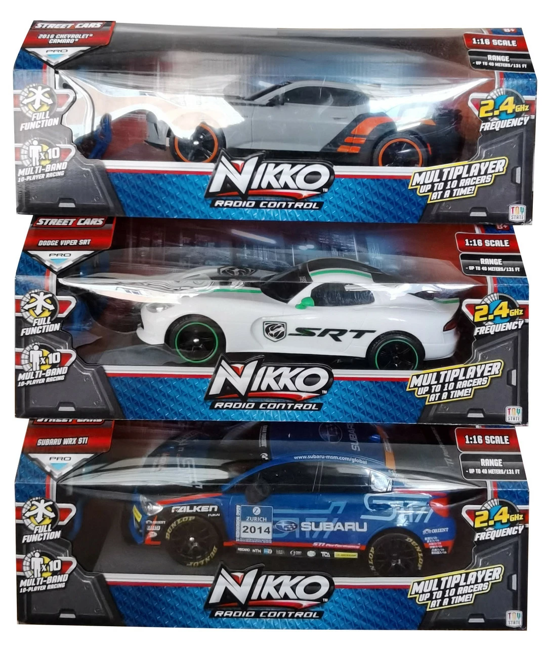 The Nikko Remote Controlled DODGE VIPER, SUBARU, NISSAN GT, CHEVROLET are the ultimate street car racers. Compete with your friends and see who will be crowned king of the streets. Each sold separately. Collect them all.