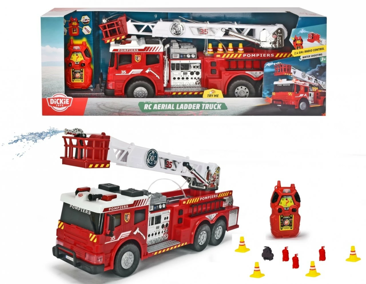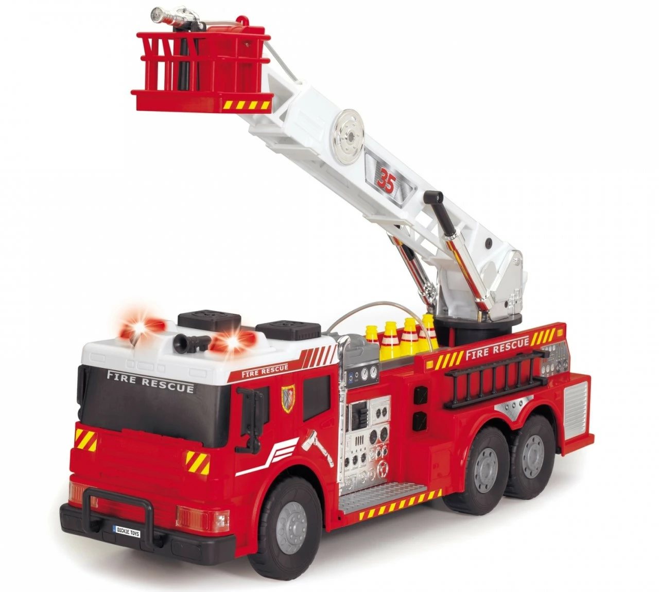 To be a fire fighter for a day – that’s a dream that makes children’s eyes glaze over. The RC Aerial Ladder Truck from Dickie Toys features a cool water spray function that is guaranteed to provide hours of endless fun for your little one. Whether it’s a building that’s on fire or a cat that needs rescuing from a tree, the brave firemen can be at the scene in no time in their speedy fire engine. The extendable arm allows the firemen to easily climb to inaccessible areas. The large fire brigade can be moved in all directions via the 4-channel remote control. There are also a range of light and sound effects to bring the exciting features to life. The remote-controlled toy vehicle is an ideal gift for boys and girls aged three and above