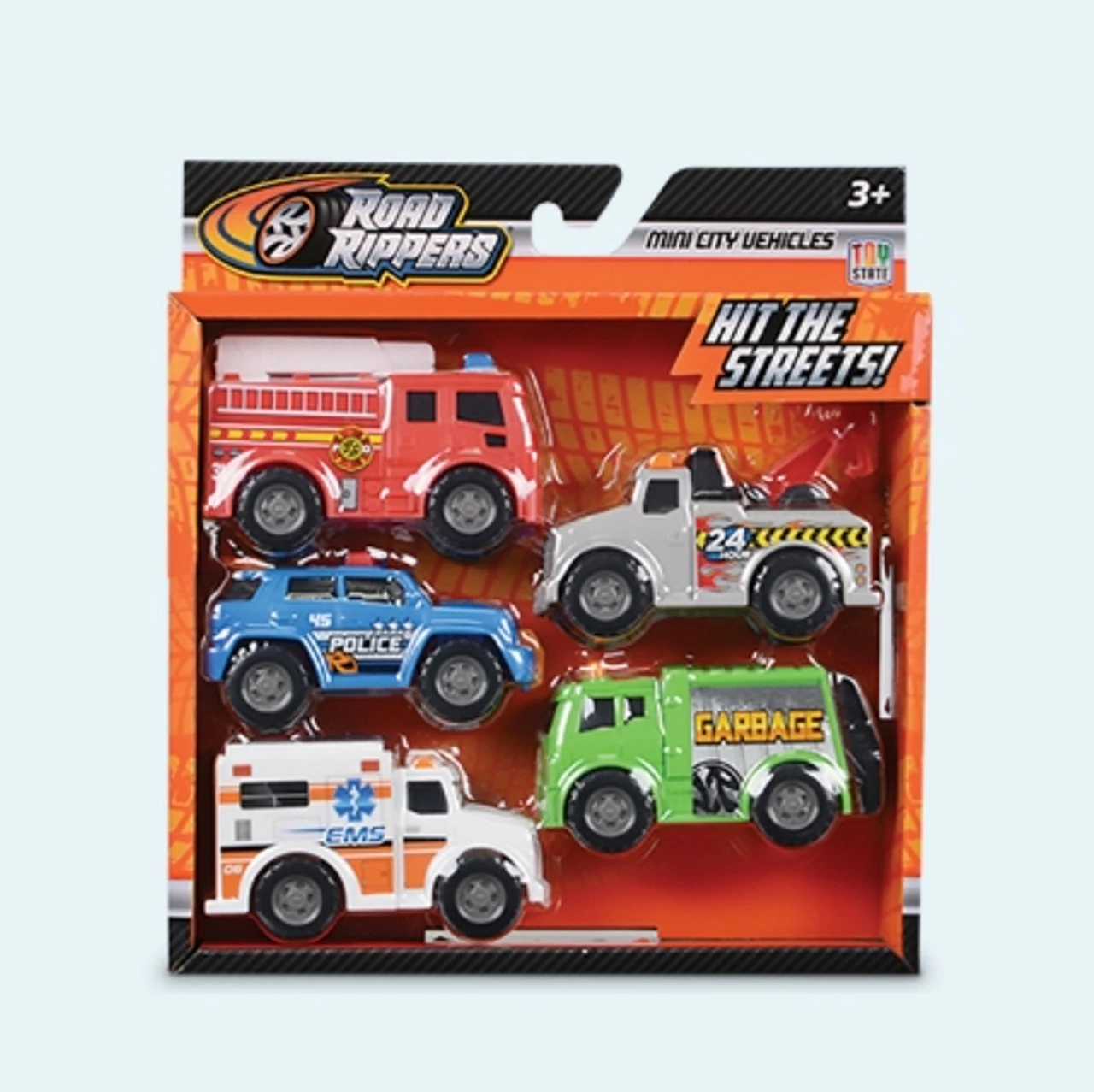 Hit the streets with these fun freewheeling city vehicles! Create fun action scenes with these 5 packs of everyday vehicles the kids are sure to love. Includes 5 mini vehicles.