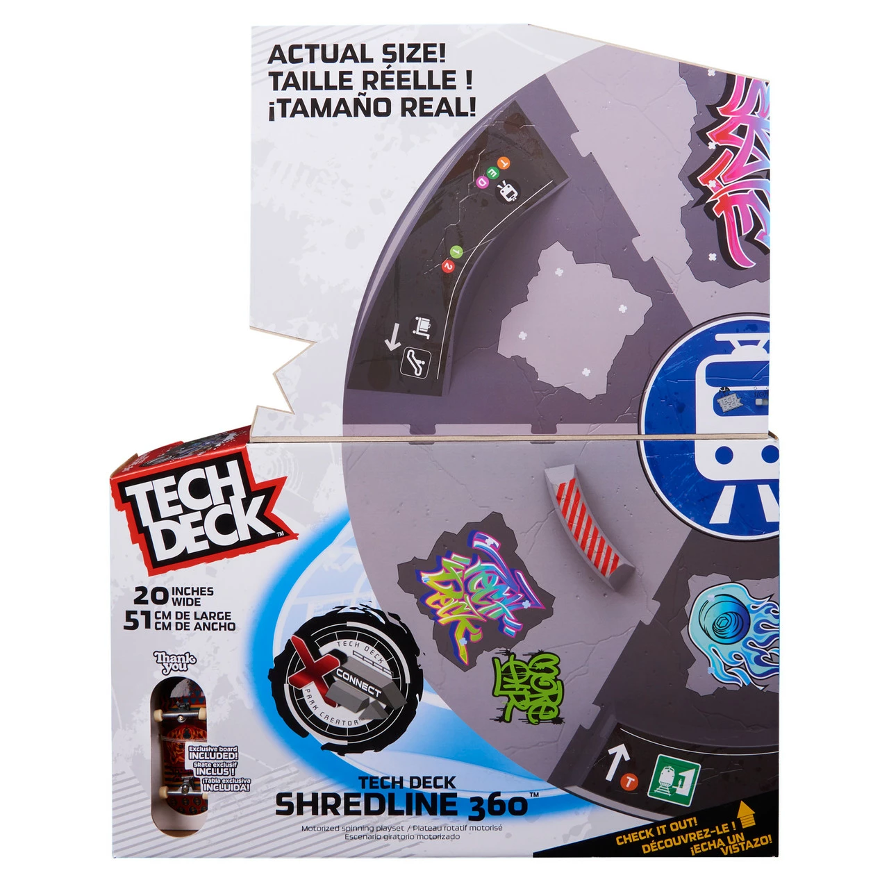 Get ready for some non-stop shredding with the Tech Deck Shredline 360! This 20-inch wide park features obstacles plates and X-Connect so you can create the ultimate Tech Deck skatepark! With 3 different speeds to choose from, you can cruise, train your skills, or pick up the spinning action for a challenge! Skate the park with the included exclusive fingerboard and add to your mini skateboard collection. Combine the park with other X-Connect compatible ramps, such as the Flip N’ Grind, Competition Wall, Neon Mega Park and Sk8 Garage ramp sets (each sold separately) to build the ultimate fingerboard park for you to shred. Use the Tech Deck Shredline 360 with your Tech Deck fingerboard collection or Tech Deck BMX (each sold separately). Tech Deck fingerboards and ramp sets are for kids and skate-lovers ages 6 and up. If you want real skate graphics from real skate companies, then it has got to be Tech Deck — start small, go big and collect them all! Create the ultimate skate park with the Tech Deck Shredline 360!