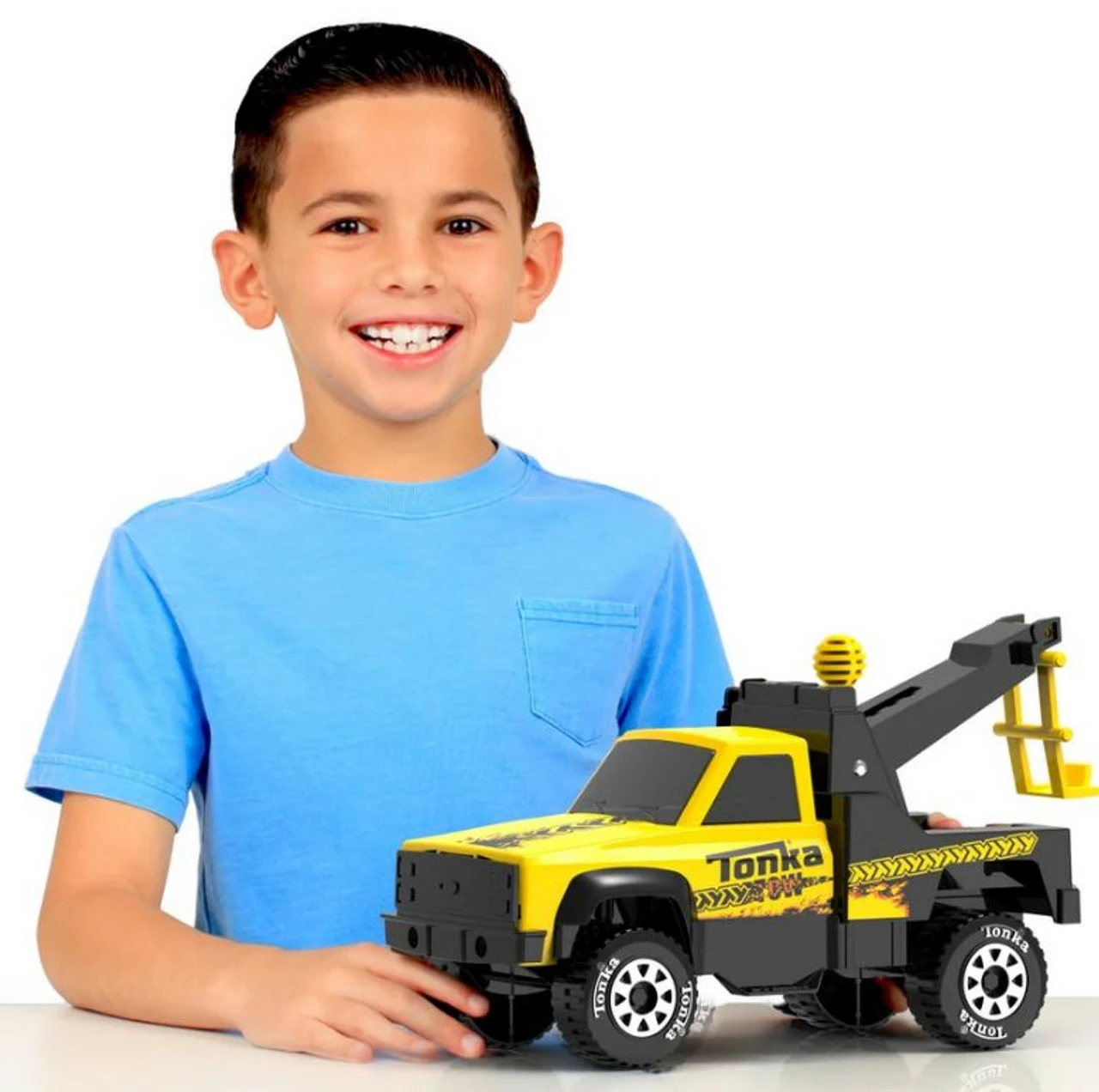 Be the first on the scene with this awesome tow truck from Tonka. This sturdy truck’s realistic design is ready for any off-road adventure! Built to take on the most treacherous trails, this sturdy pick-up truck also features a working winch for towing action and is guaranteed for life!