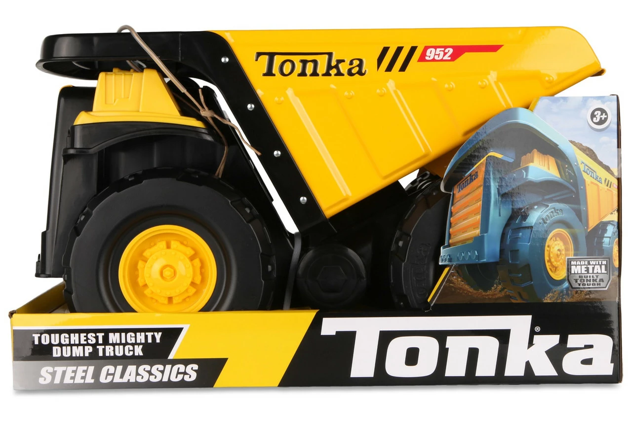Tonka is getting back to its roots with the Steel Classics Toughest Mighty Dump Truck! Built to last and withstand even the toughest Tonka kids, this is a deluxe version of the Classic Mighty Dump Truck!